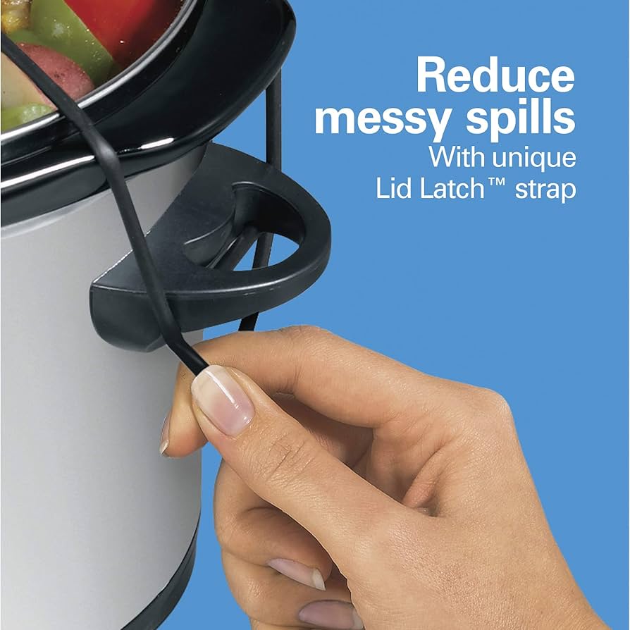 Amazon Com Hamilton Beach 7 Quart Portable Slow Cooker Serves 8 Dishwasher Safe Crock Lid Latch Strap For Travel Brushed Silver Crock Pot Home Kitchen